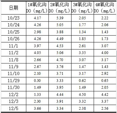 表3 各氧化沟实测DO数据